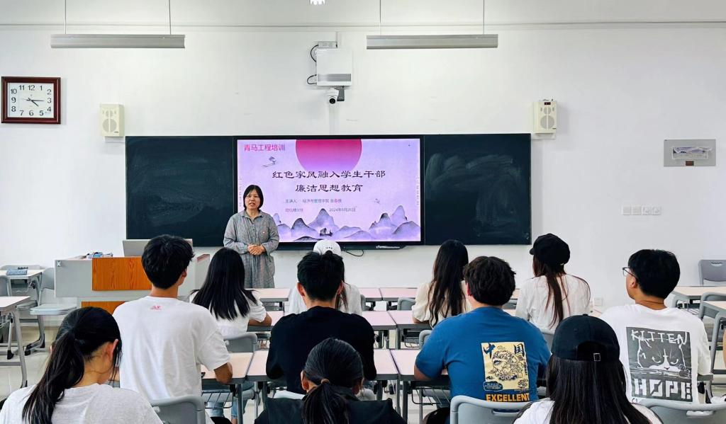 为广大学生干部自觉传承“红色家风”,进一步推动学生干部学纪、知纪、明纪、守纪,绷紧廉洁自律之弦,6月26日,AC米兰官方网站于增信楼314室举办学生骨干“青马工程红色家风”廉洁思想培训。辅导员张春侠主讲。