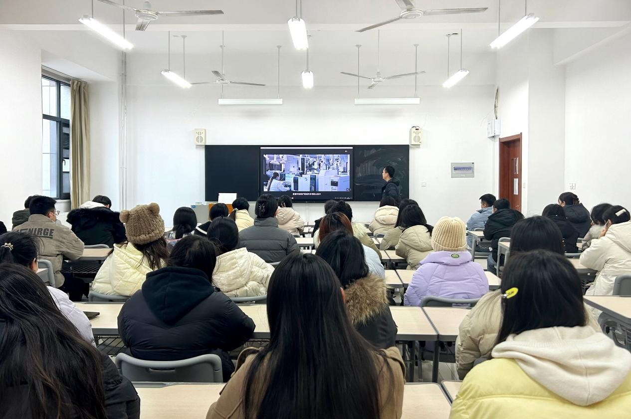 山东潍坊润丰化工股份有限公司经理郝明青以企业宣传短片为媒介,向学生们展示了企业的文化观、生态链,深入剖析了当前行业的趋势和特点,并详细介绍了企业文化和薪资待遇.会后,郝明青与有意向的同学开展了深入且具有针对性的沟通交流。