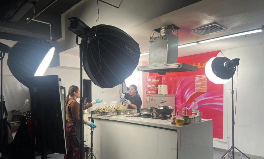 考察团实地调研了青岛鑫明珠食品销售有限公司,走进小范海鲜美食直播间与李大姐海产直播间,现场观看了现场直播的情况,详细了解电商直播运营的岗位设置、流程规划、后台数据分析及流量获取;随后参观了客服部与视频编辑部门。