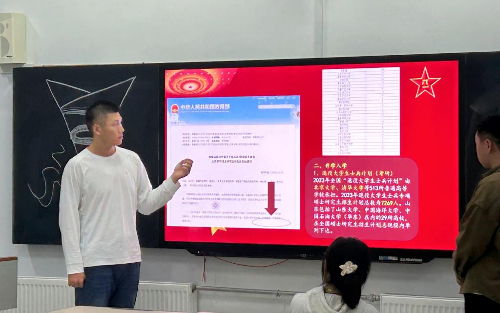 宣讲会上,刘屹等退伍士兵为大家全方位、多角度介绍了大学生入伍政策、入伍基本流程、入伍基本条件、参军退役后优抚安置、就业复学、待遇发放等政策以及注意事项,帮助同学们对征兵流程和各项优惠政策有清晰的认识。他们也结合自身从军经历,讲述了在部队的成长历程和体会,以及应征入伍时可能遇到的问题,极大激发了同学们参军报国、应征入伍的热血情怀。接着他们向同学们介绍了AC米兰官网意向征兵学生交流群,针对参会学生提出的各类征兵问题,一一进行了答疑解惑,鼓励大家积极踊跃参军入伍、报效祖国。