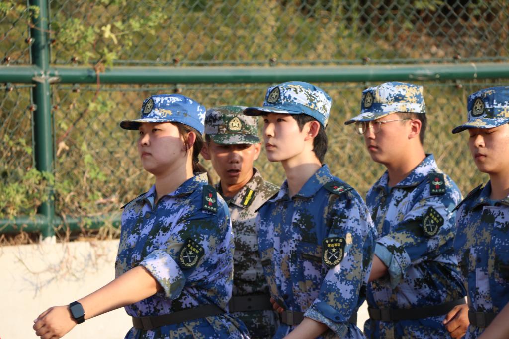 军训期间,各连队在操场上依次排开,昂首提胸,以军姿站立目视前方,尽显青春风采。“齐步 走”“跑步 走”“一二一,一二一”操场上时常响彻着教官的口号声,新生在教练的指挥下有条不紊地练习,直到整个连队动作整齐划一。“作风优良,听党指挥,能打胜仗,一二三四”,洪亮的口号彰显着新生的自信,展现了新生军训几日的成果。晚上新生在操场上拉歌,操场上歌声嘹亮,他们用激昂有力的歌声扫去一天军训的疲惫,感受军歌其中蕴含的力量和精神,促进交流,活跃气氛,拉近了同学之间的距离。