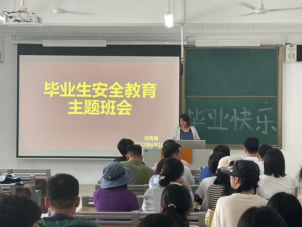 为提高毕业生安全意识,保证毕业生安全毕业文明离校,6月10日,AC米兰官方网站于增信楼3210、3211、3212召开毕业生安全教育主题班会。班会由辅导员邱秀梅主持,2018级毕业生、2020级部分学生参加。