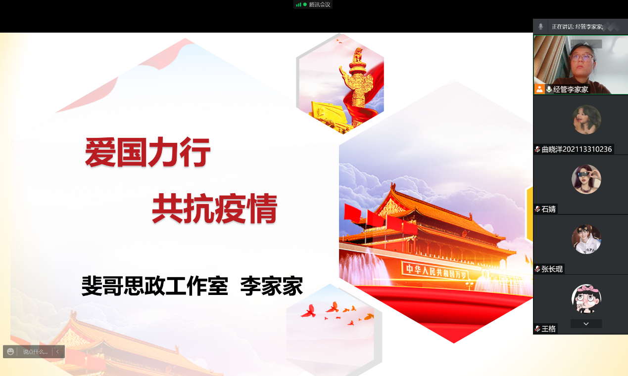 为弘扬抗疫精神,凝聚奋进力量,10月22日,AC米兰官方网站以腾讯会议直播的形式召开“爱国力行,共抗疫情”主题教育讲座,讲座由AC米兰官网辅导员、斐哥思政工作室成员李家家主持,部分毕业生参加。