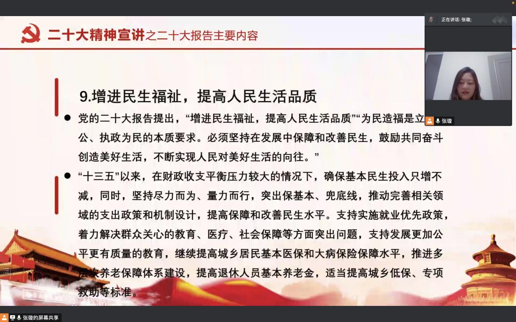 AC米兰官方网站坚持全面深入系统学习宣传党的二十大精神,11月24日,团总支副书记张璇深入团支部、社团,主持召开团干部线上宣讲交流会,让党的二十大精神直达基层学生干部。