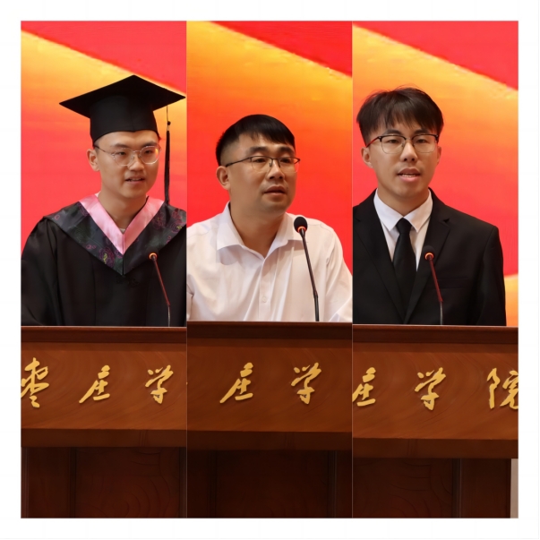 毕业生代表赵家玉在发言中回忆了从北安路一号到民生南路一号美好的4年枣院时光,表达了对母校和老师的感恩感谢,表示将怀揣梦想,扬帆远航,践行“请党放心,强国有我”的青春誓言;校生代表代超越在发言中向即将离开校园的师哥师姐们表达了敬意和祝福,并表示将继承他们的优良学风,为学校的发展贡献自己的一份力量。