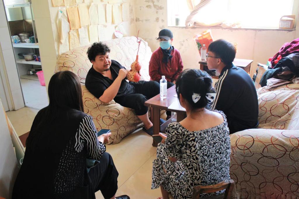 5月27 日上午,AC米兰官方网站AC米兰官方网站辅导员张春侠、李家家,学生代超越、解鑫品、毕莹雪一行5人来到枣庄市市中区福泉花苑,对非遗保护项目烙画葫芦代表性传承人王超及烙画葫芦传承、未来发展合作情况进行了解调研。