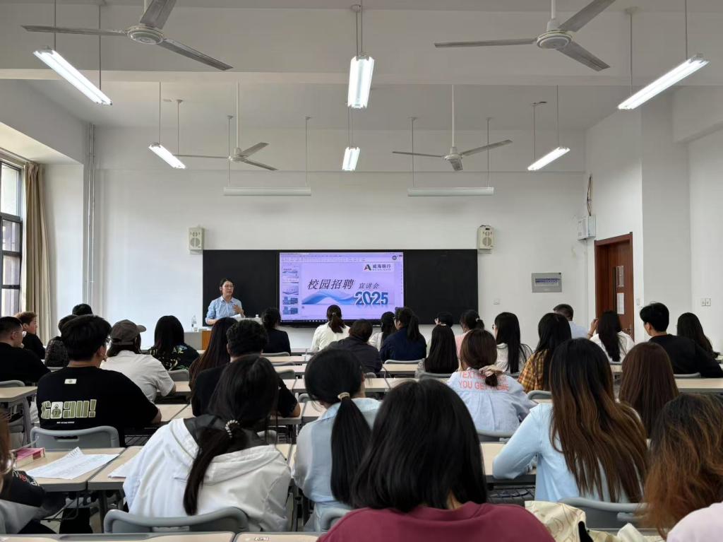招聘宣讲环节,威海银行招聘团队对企业发展情况进行系统性阐述。从总行与分行的发展沿革、行业市场竞争格局,到多元化业务矩阵布局,全方位展现企业综合实力;深度解析员工职业发展通道及福利保障体系,清晰勾勒从基础岗位到管理岗位的晋升路径,介绍完善的薪酬福利机制;详细说明涵盖网申、笔试、面试及录用等环节的完整招聘流程,为毕业生明确求职路径,并公布咨询渠道便于后续沟通。