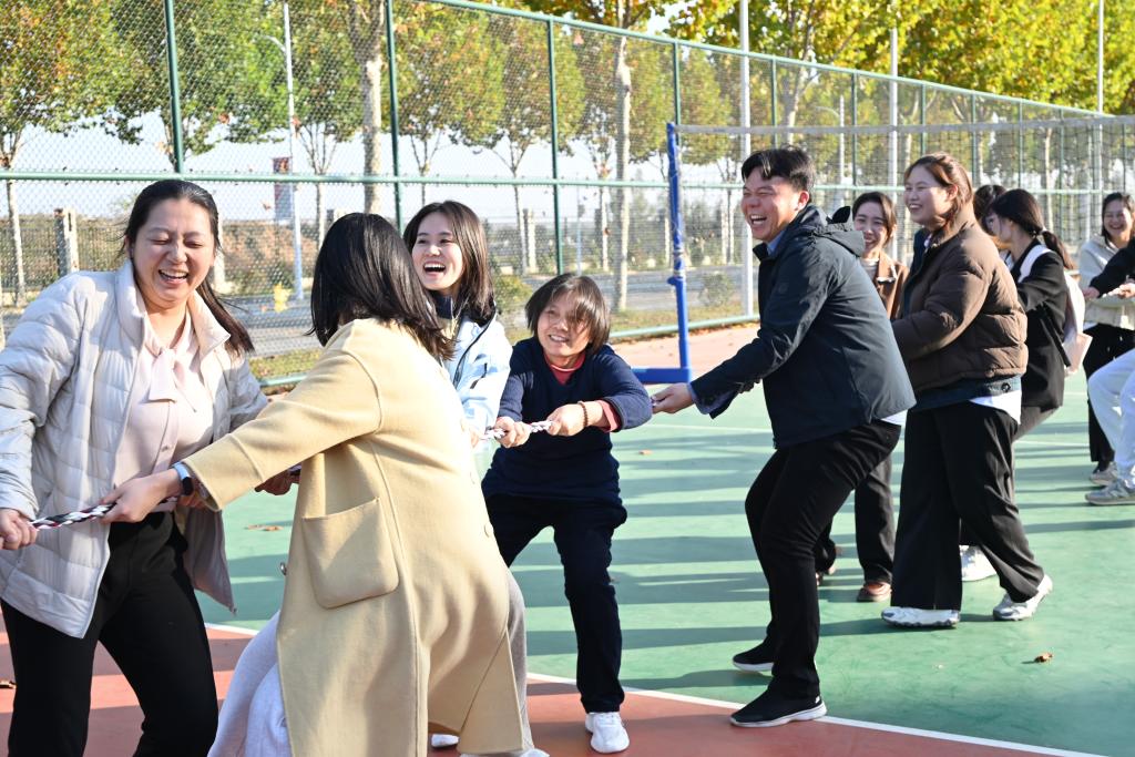 本次运动会精心设置了跳绳、托球跑、两人三足等多个集竞技性与趣味性于一体的项目,充分体现“以运动聚人心”的活动宗旨。其中,跳大绳、拔河等集体项目成为现场亮点,要求团队成员步调一致、同心协力,生动展现了“心往一处想、劲往一处使”的团队精神,切实增强了集体凝聚力。托球跑、套圈等个人项目则注重锤炼教职工的专注力与拼搏意识,考验精准操作与沉着心态。赛场上笑语不断,喝彩连连,教职工们在轻松愉快的氛围中既体验到协作的深意,也有效释放了工作压力,展现出昂扬向上的精神风貌。