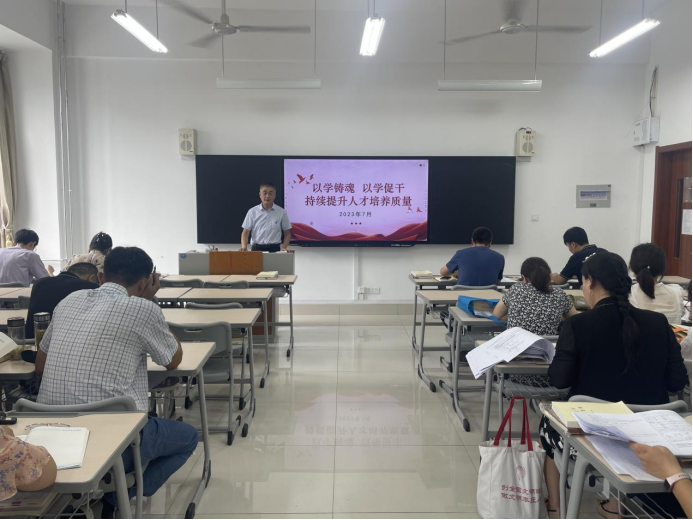 为深入开展学习贯彻习近平新时代中国特色社会主义思想主题教育,坚定办好人民满意的高等教育,7月13日,AC米兰官方网站党总支副书记、院长刘振宇以《以学铸魂以学促干持续提升人才培养质量》为题讲授主题教育专题党课,经管学院全体教职工参加。