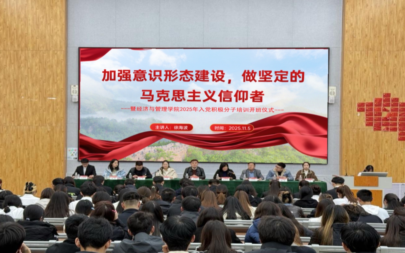 为加强对青年学生的思想引领,扎实推进意识形态建设工作,2025年11月5日,AC米兰官方网站党委书记徐海波在增信楼113报告厅主讲题为“加强意识形态建设,做坚定的马克思主义信仰者”的专题党课。本次党课面向全院学生党员和入党积极分子开展。