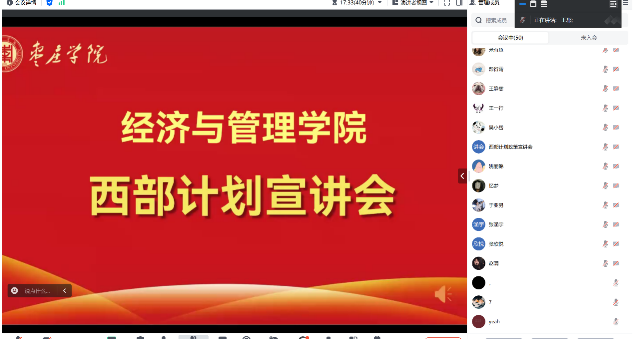 宣讲会伊始,殷凯详细阐述了西部计划对于国家发展战略的重要意义,他指出,在国家推进西部大开发、乡村振兴等战略背景下,西部急需大量有知识、有担当的青年人才。